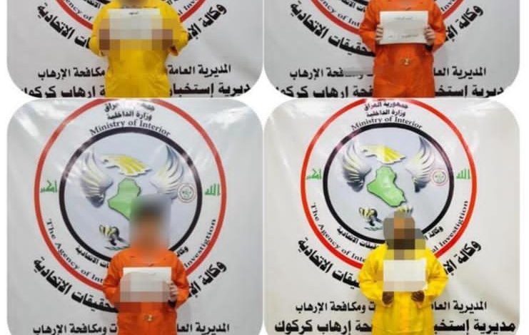 واضافت، انه ” تم تأشر مطلوبيتهم وفق احكام المادة ٤ارهاب لانتمائهم لعصابات داعش الارهابية في مايسمى ديوان الخدمات وديوان الجند تحت كنى (ابوزيد وابو عزام وابو زياد وابو احمد) ،ومن خلال التحقيقات الاولية معهم اعترفوا بأنتمائهم لتلك العصابات الإجرامية واشتركوا بعدة عمليات ارهابية من بينها مايسمى غزوة تل اسقر عام ٢٠١٥ ضد قوات البشمركة و غزوة الضباب في محافظة كركوك”.