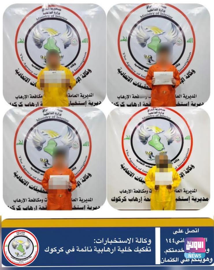 وقالت الوزارة في بيان تلقت (الأولى نيوز) ، نسخة منه، ان “مفارز وكالة الاستخبارات المتمثلة بمديرية استخبارات كركوك في وزارة الداخلية تمكنت من تفكيك والقاء القبض على خلية ارهابية نائمة مكونة من اربعة ارهابيين بمناطق متفرقة من محافظة كركوك”.