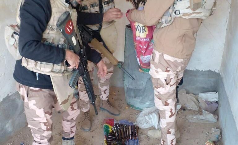 وذكر بيان للخلية تلقت (الاولى نيوز) نسخة منه، انه تمكنت القطعات الامنية ضمن قاطع قيادة عمليات ديالى، ووفقاً لمعلومات استخبارية دقيقة وخلال العملية التي انطلقت بصفحتها الأولى صباح اليوم، من العثور على ثلاثة أوكار للإرهابيين احتوت على عدد من العبوات الناسفة وقنابر الهاون و٩ صواريخ spg9 و٥ حشوات صاروخ وجليكان مملؤة بمادة C4 ومساطر تفجير ورمانة يدوية واعتدة مختلفة وخزان مياه وافرشة واغطية واواني طبخ ومواد أخرى.