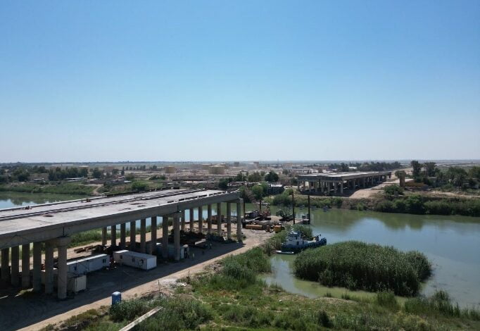 وتابع” كما يُعدُّ معبرا لمرور الشاحنات المحملة بالمواد الإنشائية الأولية من المقالع في محافظتي ميسان وواسط”، مشيرا إلى، أن” نسبة الإنجاز للمشروع بلغت 89%، ومن المؤمل إنجازه نهاية العام الحالي”، موضحا، أن” المشروع عبارة عن جسرين بطول 528 مترا، بممرين ذهاباً وإياباً، وبعدد 17 فضاء”.