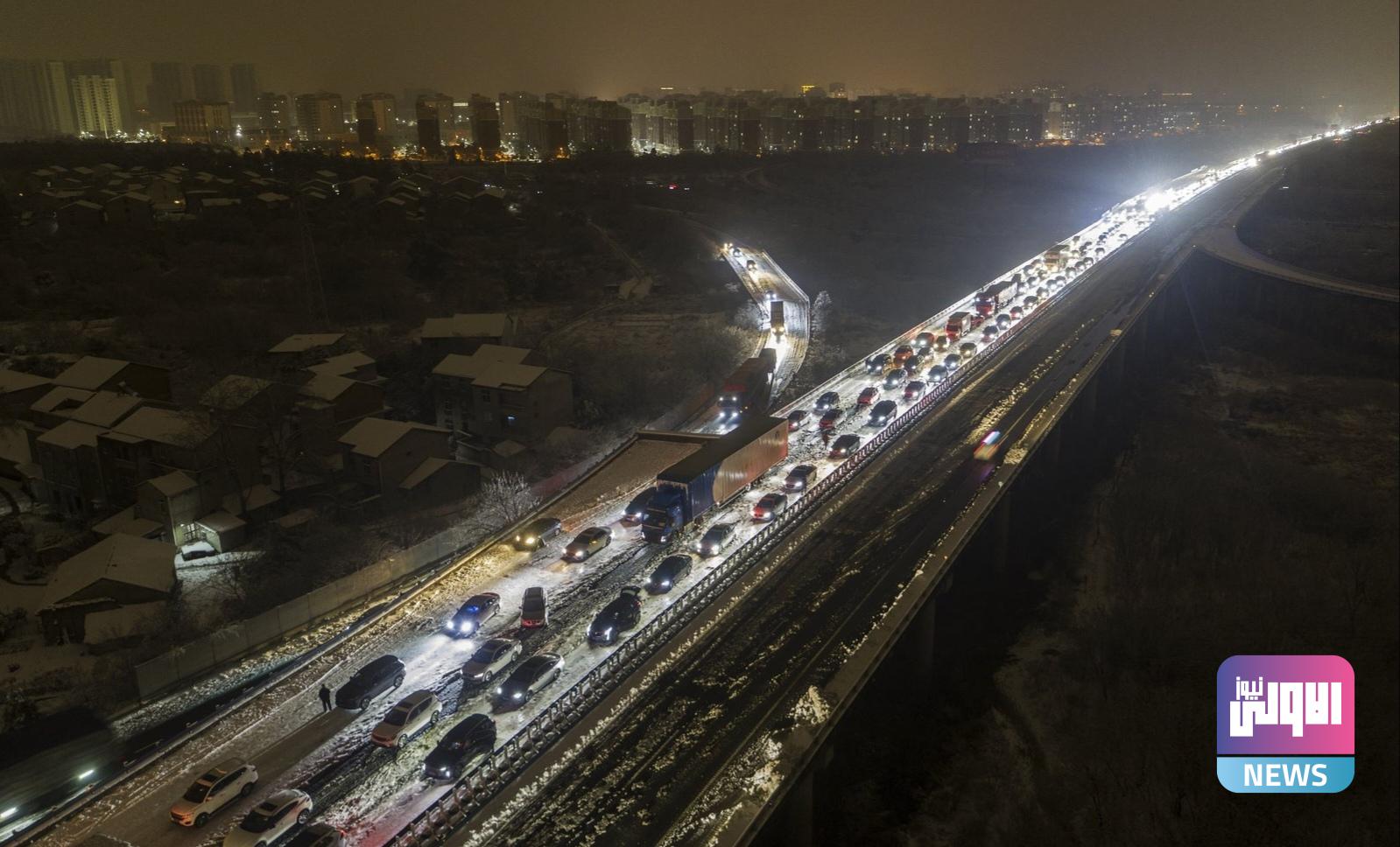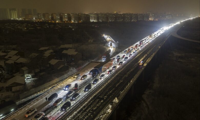 علقت آلاف السيارات على الطرق السريعة وسط الصين بسبب الثلوج التي عطّلت السفر عبر البلاد في ذروة احتفالات السنة القمرية الجديدة.