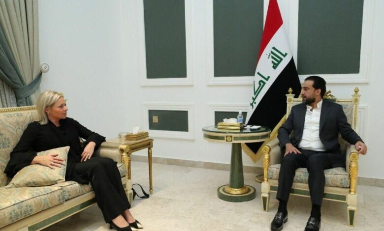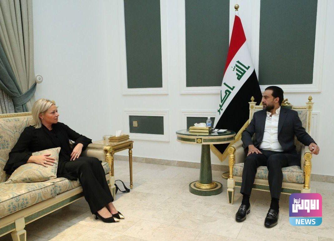 بحث رئيس مجلس النواب محمد الحلبوسي والممثل الخاص للأمين العام للأمم المتحدة في العراق جينين هينيس بلاسخارت ، اليوم الاثنين، تطورات الأوضاع السياسية في البلاد.