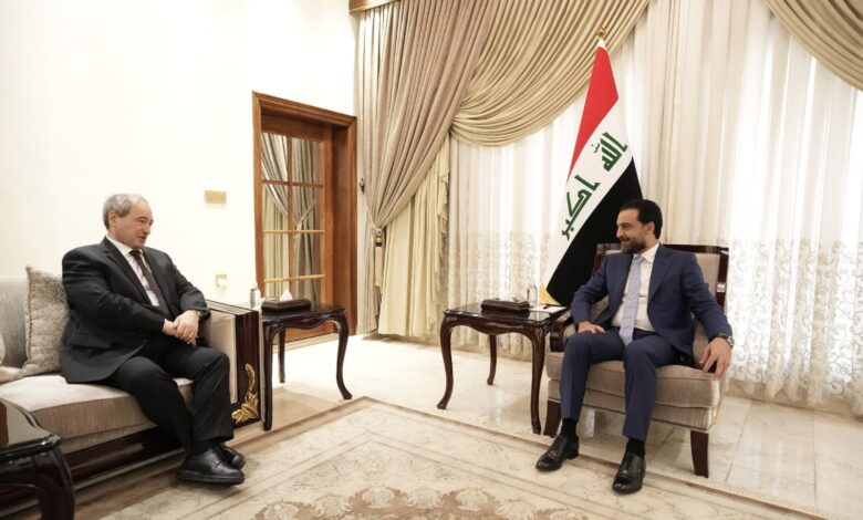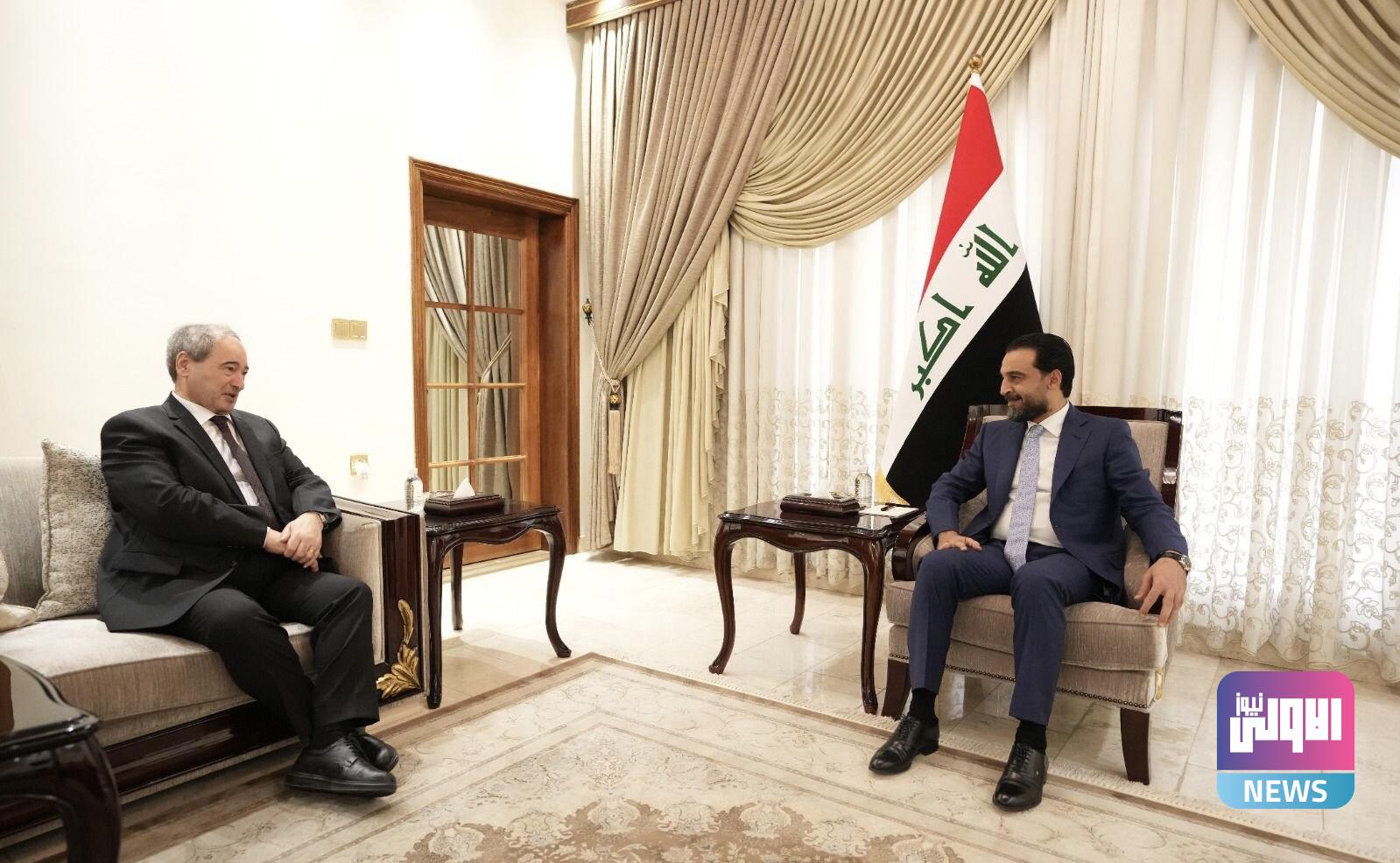 ونقل الوزير السوري إلى رئيس مجلس النواب تحيات الرئيس السوري بشار الأسد، مشيداً بـ”الجهود التي بُذلت من الحلبوسي خلال رئاسته اجتماع الاتحاد البرلماني العربي في بغداد والخطوات التي أسهمت في إعادة سوريا إلى محيطها العربي”، معرباً عن “تقدير حكومة بلاده لمواقف العراق الداعمة لسوريا في مواجهة الأزمات”.