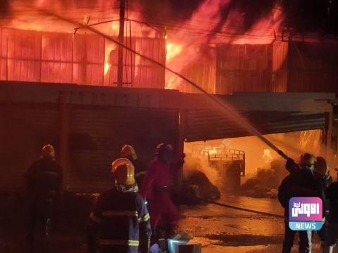 الدفاع المدني تخمد حريقاً هائلاً اندلع داخل شركة للمياه المعدنية جنوب بغداد (صور)