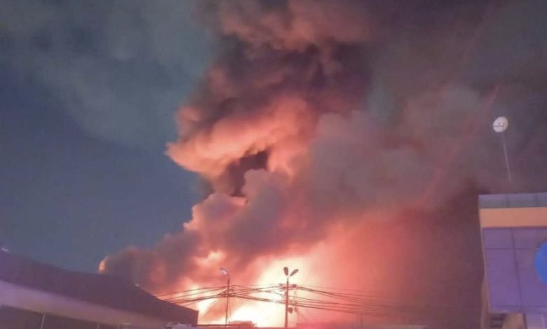 اندلع حريق داخل محلات تجارية في محافظة النجف الأشرف.
