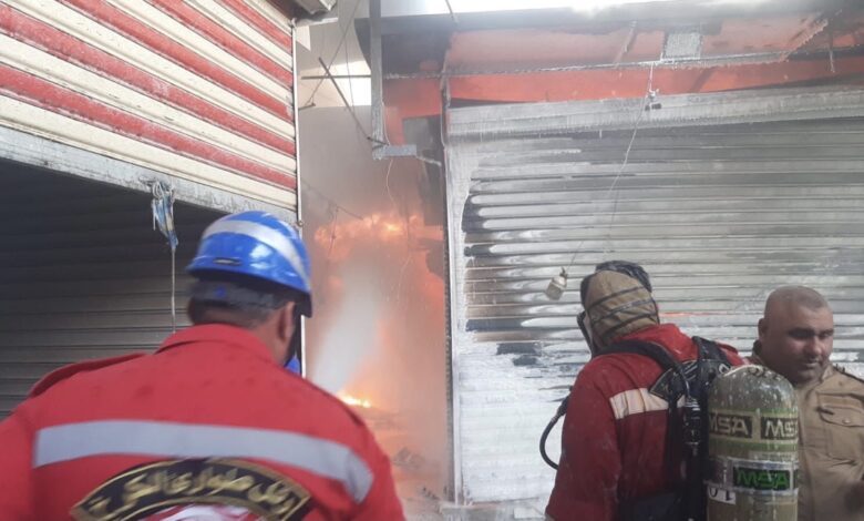 الدفاع المدني يخمد حريقاً التهم 150 محلاً جنوبي بغداد (صور)