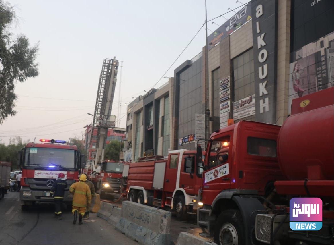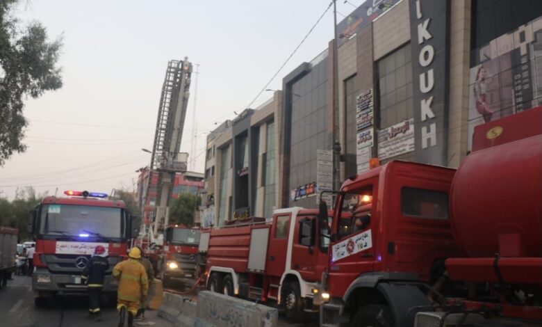الدفاع المدني يخمد حريقاً اندلع بمجمع تجاري وسط بغداد (صور)