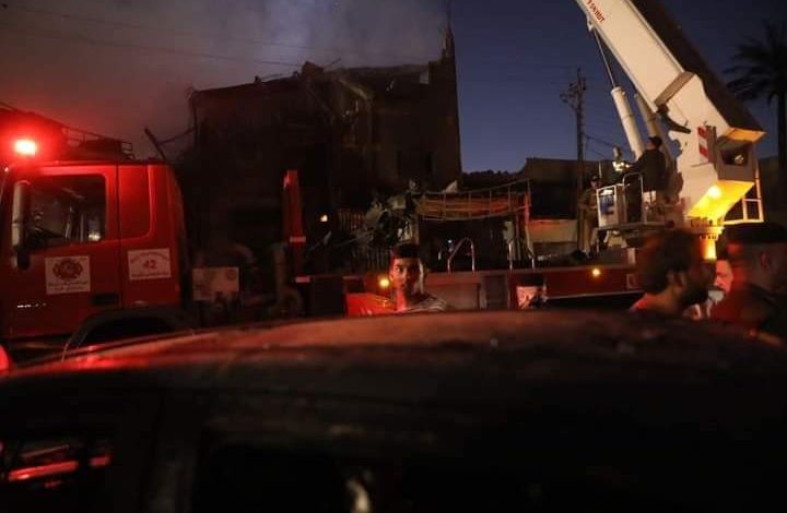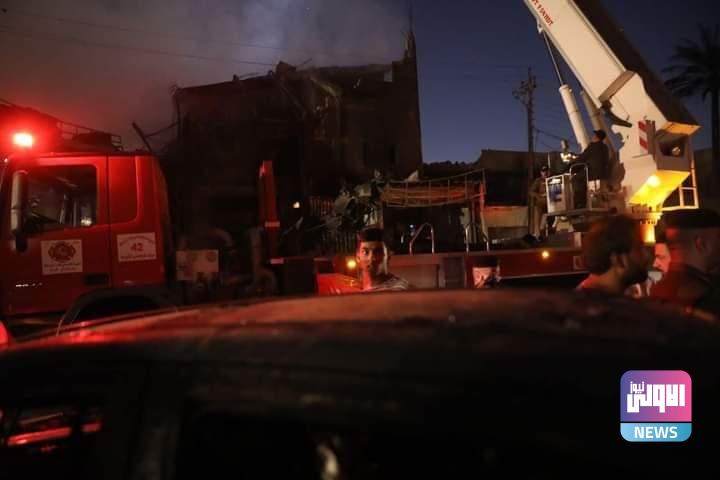الدفاع المدني يخمد حريق مخازن الوزيرية ويشرع بالبحث عن المفقودين