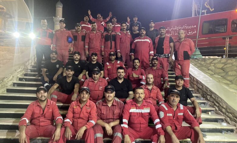 وذكرت المديرية في بيان تلقته (الاولى نيوز)، أن “فرق إنقاذ الدفاع المدني استنفرت ودفعت من بغداد بجهد فريق النخبة رجال البحث والإنقاذ الدولي التابع لها مع تحريك جهد إضافة من فرق إنقاذ محافظة بابل والنجف والديوانية والمثنى كجهد ساند لفرق إنقاذ كربلاء المقدسة بقيادة مباشرة من مدير عام الدفاع المدني اللواء كاظم سلمان بوهان لتبلغ في مجملها ثلاثين فرقة إنقاذ تخصصية ذات خبرة ميدانية وعلمية عالية المستوى وبرتب متقدمة لضباط الدفاع المدني من خبراء مجال الأنقاذ” .