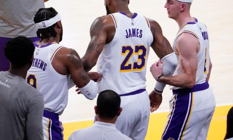 خرج النجم ليبرون جيمس من الربع الثاني في مباراة فريقه لوس أنجليس ليكرز ضد أتلانتا هوكس ضمن دوري كرة السلة الأميركي للمحترفين السبت، ما قد يشكل نكسة لحامل اللقب الذي يعاني أصلا من غيابات.