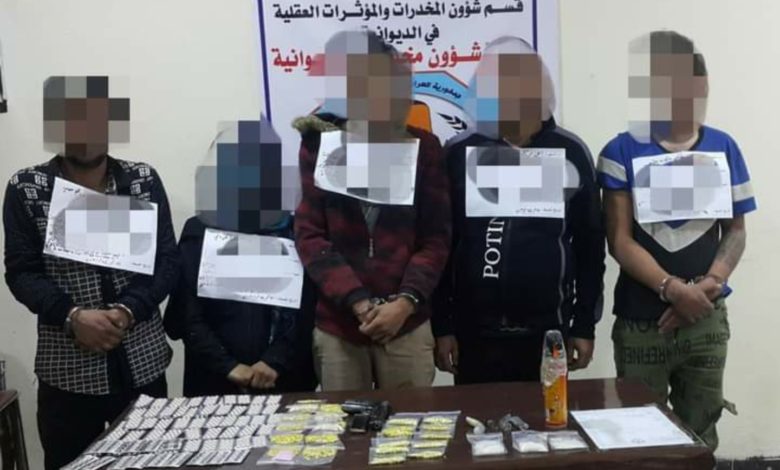 الديوانية القبض على ٥ متهمين بحوزتهم مواد مخدرة