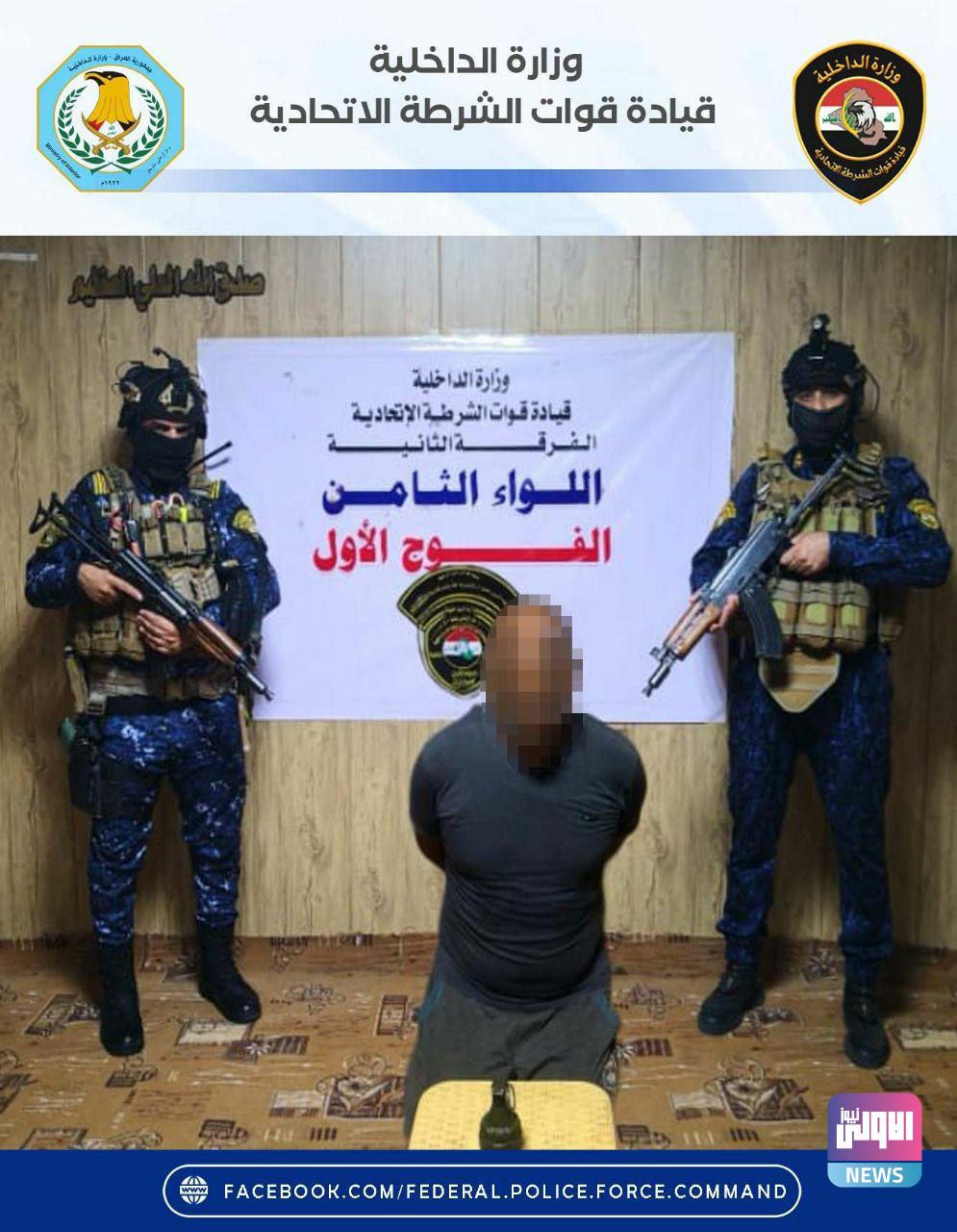 كما ألقت قوة من اللواء السابع الفرقة الثانية شرطة اتحادية مسنودة بالجهد الاستخباري ومفرزة من مكتب مكافحة إجرام البياع ، القبض على متهم مطلوب وفق أحكام المادة 430 (تهديد) في منطقة (الشباب) جنوب غرب بغداد ،