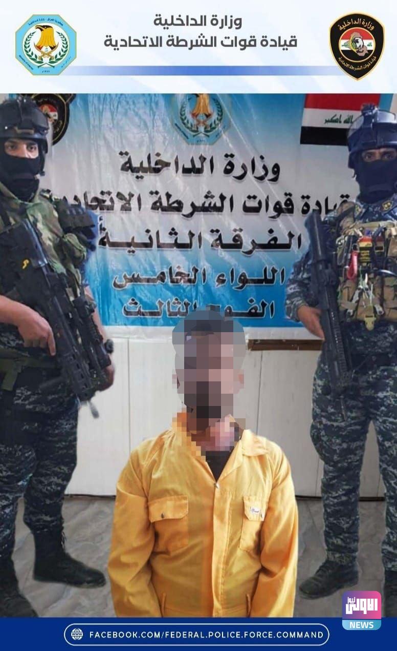 وفقاً لمعلومات استخبارية وبعملية نوعية، تمكنت قوة من اللواء الخامس الفرقة الثانية شرطة اتحادية بالاشتراك مع مفارز استخبارات اللواء التابعة لوكالة الاستخبارات والتحقيقات الاتحادية من إلقاء القبض على متهم مطلوب وفق أحكام المادة ٤/إرهاب في منطقة (الحرية ) غرب بغداد ، تم إحالته اصولياً الى الجهات المختصة لإكمال الإجراءات القانونية والتحقيقية اللازمة بحقه .