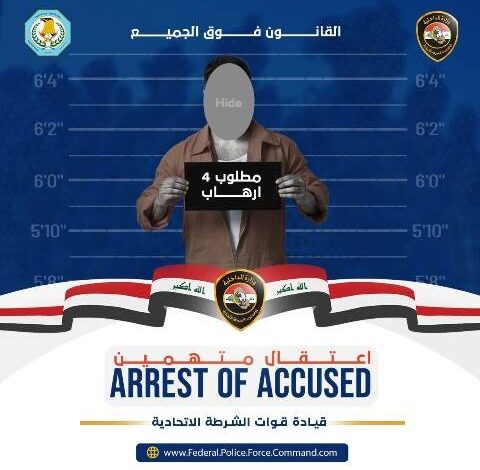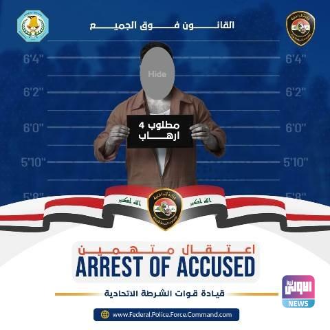 أعلنت الشرطة الاتحادية، اليوم الجمعة، عن إلقاء القبض على متهم بالإرهاب في كركوك.