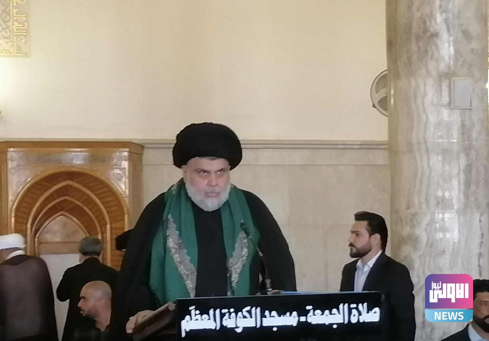 أمَّ زعيم التيار الصدري مقتدى الصدر، اليوم الجمعة، المصلين في مسجد الكوفة بمحافظة النجف الأشرف.