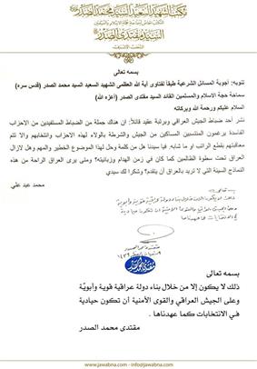 ورد الصدر عن السؤال بالقول، “قد حصل البعض على مرادهم ونسوكم، كما حذرتكم، وقد انطوت صفحتكم ولايريدون عودتكم الا اذا استعملوكم من اجل مآربهم السياسية”.