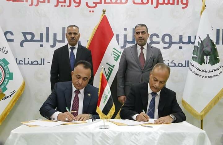 وذكرت وزارة الصناعة والمعادن، في بيان تلقته (الاولى نيوز)، أنه “بحضور المُستشار العلمي لوزارة الصناعة والمعادن عمار عبد الله حمد، والوكيل الإداري لوزارة الزراعة مهدي سهر، وقعت الشركة العامة لصناعة الأسمدة الجنوبية مُتمثلة بمُديرها العام المُهندس حيدر طاهر جاسم، مع الشركة العامة للتجهيزات الزراعية مُتمثلة بالمُدير العام المُهندس طالب الكعبي، عقدين لتجهيز سماد اليوريا وسماد الداب وبما يُلبي حاجة وزارة الزراعة للعام الحالي وذلك على هامش فعاليات الأسبوع الزراعي المُقام حالياً في معرض بغداد الدولي”.