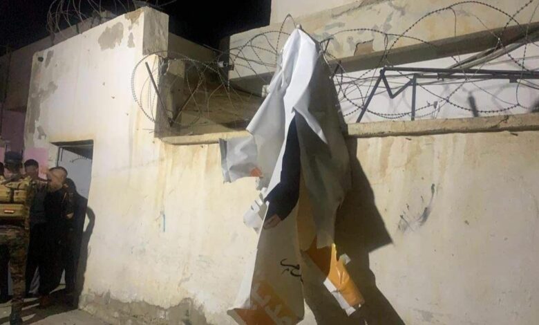 ‏الصور الاولى من استهداف مقر حزب تقدم في قضاء هيت