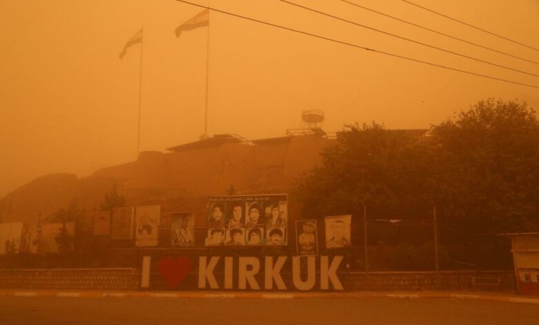 العاصفة الغبارية تصل إلى محافظة كركوك (صور)