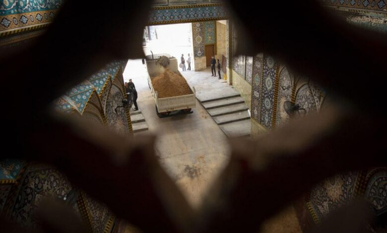 العتبة الحسينة تفرش أبواب الصحن بالرمال