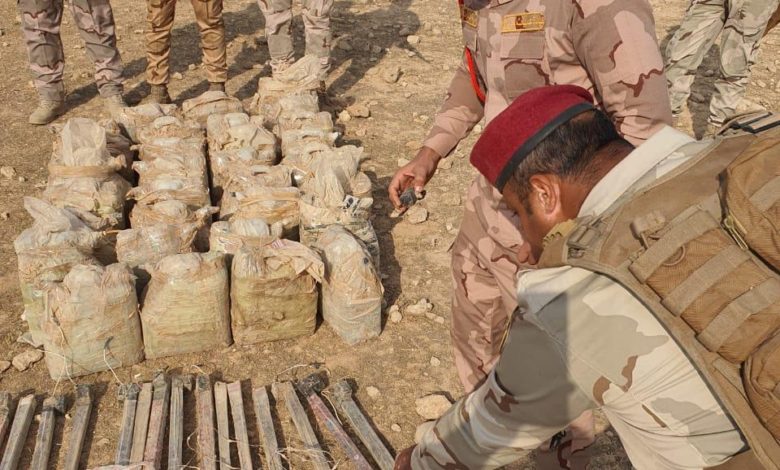 وأضافت، أن “الكدس احتوى على ٣٥ حاوية بلاستيكية سعة ١٠ لتر مملؤة بمادة C4 و٢٠ مسطرة تفجير و٥ سبحة تفجير”، مبينا أنه “تم تفجير المواد من قبل مفارز المعالجة موقعياً”.