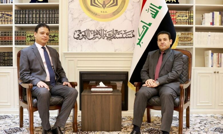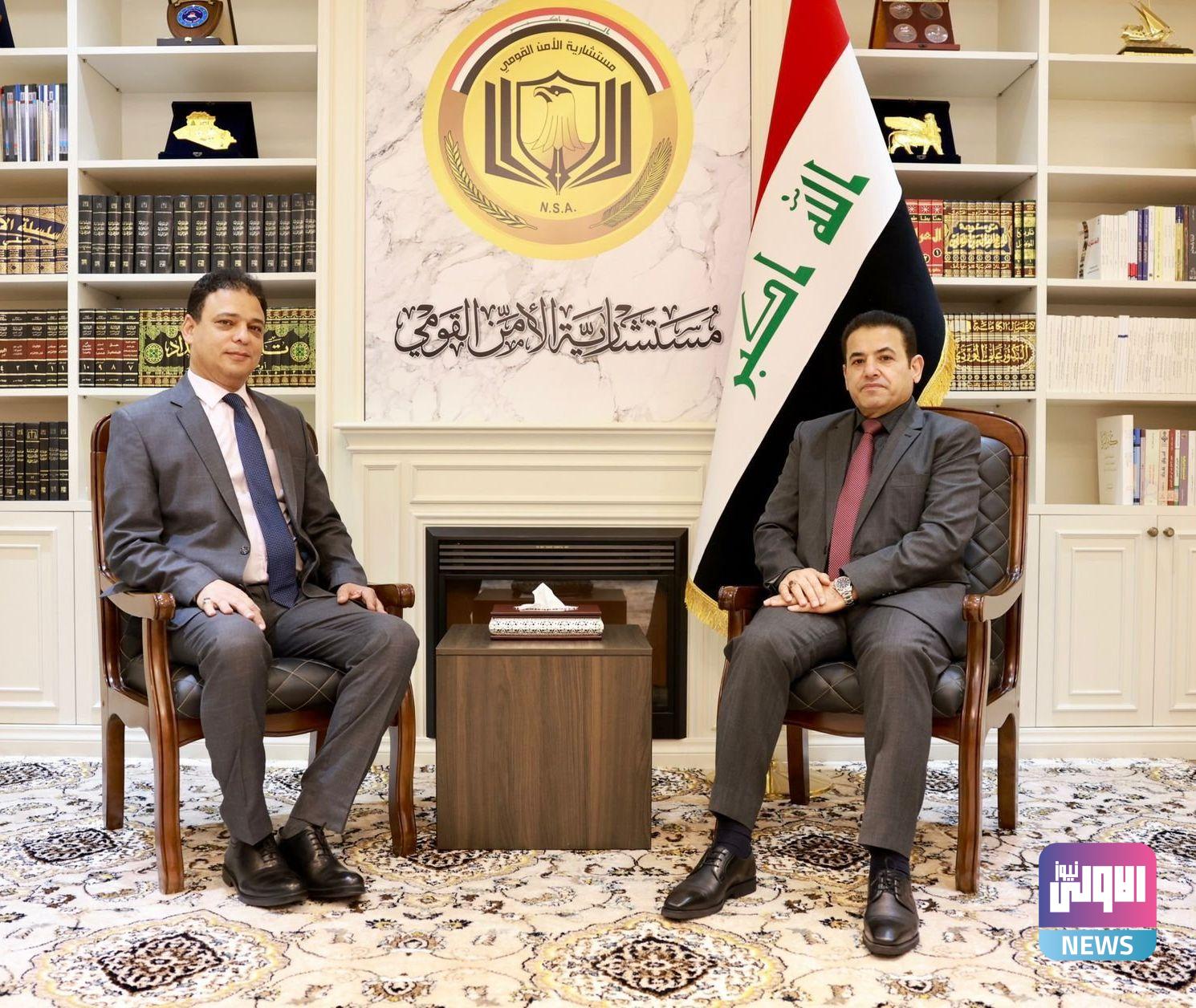 بحث مستشار الأمن القومي قاسم الأعرجي، اليوم السبت، مع السفير المصري في بغداد وليد محمد إسماعيل تعزيز العلاقات الأخوية بين العراق ومصر وفي المجالات كافة.