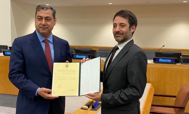 وذكر بيان لوزارة الموارد المائية تلقته (الاولى نيوز)، ان “العراق اودع صك الانضمام الى اتفاقية حماية واستخدام المجاري المائية العابرة للحدود والبحيرات الدولية (المعروفة باسم اتفاقية الأمم المتحدة للمياه) على هامش مؤتمر المياه في نيويروك في 24/3/2023 “.