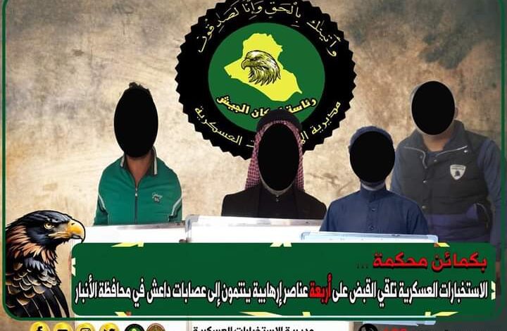 القبض على أربعة عناصر من عصابات داعش الإرهابية في الأنبار