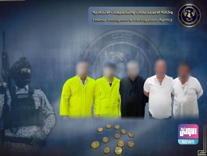 واضاف انه “تم تشكيل فريق عمل استخباري بعد استحصال الموافقات القضائية الاصولية، وبكمين محكم تم القبض على خمسة متهمين بحوزتهم  12 قطع اثرية مصنوعة من الذهب وجرة واحدة اثرية”.