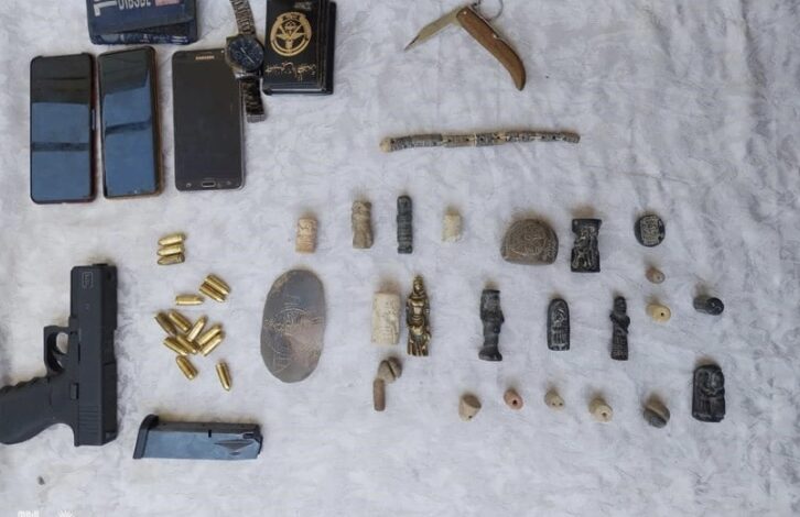 واوضح، ان “عملية إلقاء القبض، جاءت بعد قيام مفارز الوكالة بتعقب شبكات التهريب والمتاجرة بالاثار، حيث تم نصب كمين محكم واستدراج احدى الشبكات في محافظة بابل والقاء القبض على جميع افرادها المكونة من 7 متهمين وبحوزتهم 8 قطع اثرية قيمة”.