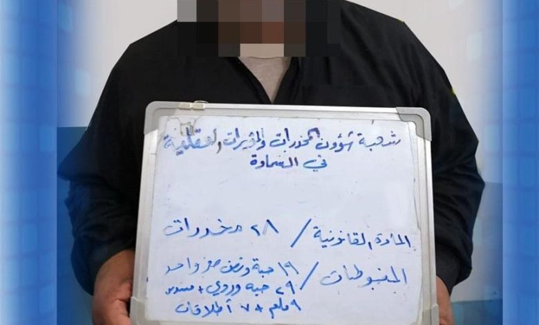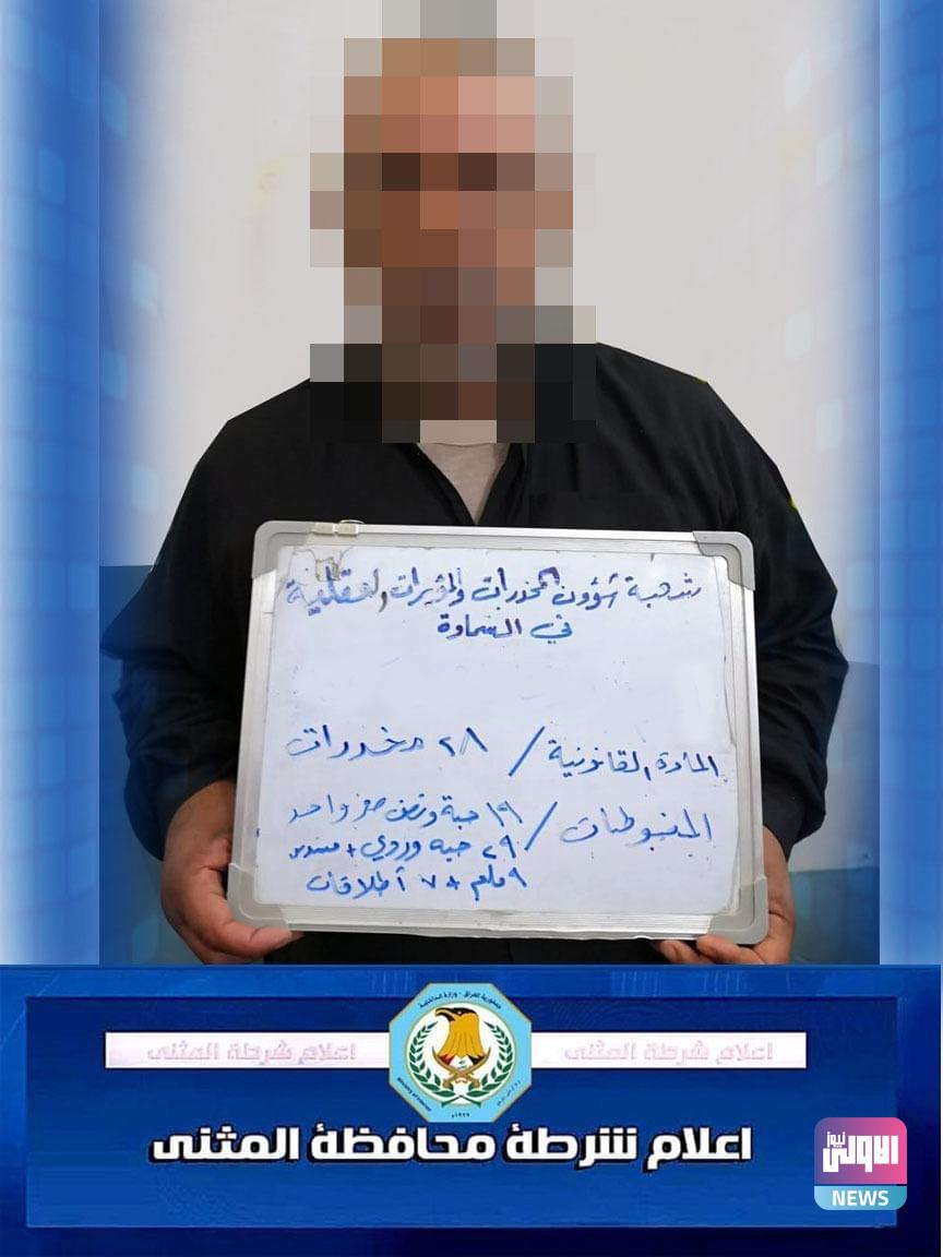 أعلنت شعبة مخدرات قضاء السماوة التابعة الى مديرية مكافحة المخدرات والمؤثرات العقلية في المثنى عن ورود معلومات من خلال مصادرها عن وجود شخص يتجول في احدى المناطق السكنية في القضاء ويقوم بتعاطي الحبوب المخدرة والمتاجرة بها