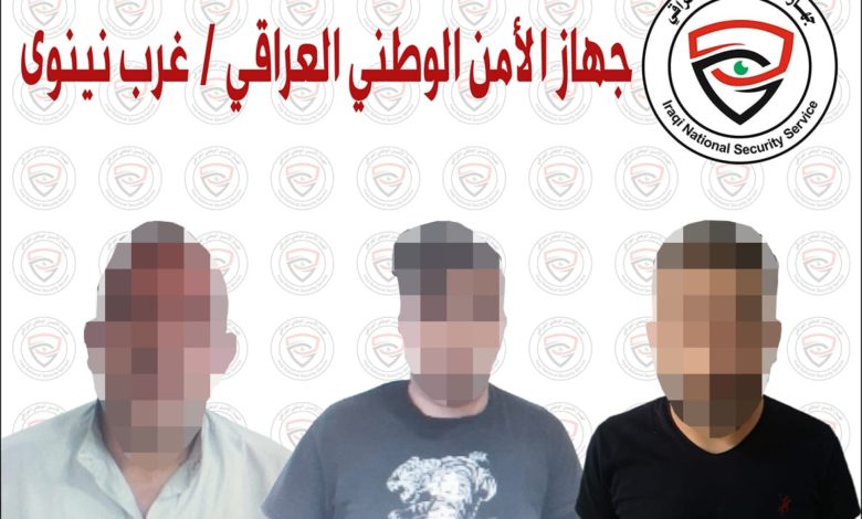 وذكر الجهاز في بيان اطلعت عليه ألاولى نيوز، ان”مفارز جهاز الأمن الوطني في غرب محافظة نينوى وبعد ورود معلومات استخبارية وتكثيف الجهد الميداني/ تمكنت من القاء القبض وفق مذكرات قضائية على ثلاثة عناصر إرهابية احدهم مسؤول مفارز الاغتيالات في منطقة تلعفر التابع لديوان الجند والاخر مسؤول ديوان عقارات عصابات داعش في منطقة سنجار والثالث مسؤول كفالات منطقة البعاج ومشترك بالاستيلاء على مخازن اسلحة القوة الماسكة والعجلات العسكرية إبان سيطرتهم على المحافظة”.