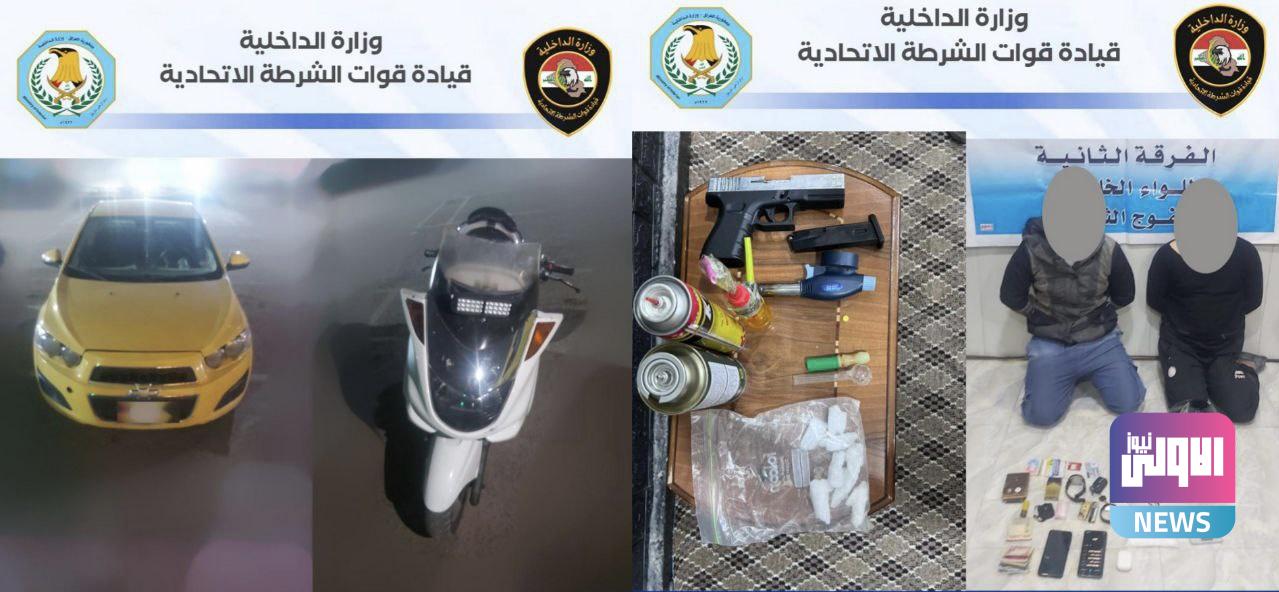 ألقت قوة من اللواء الخامس الفرقة الثانية شرطة اتحادية بالاشتراك مع مفرزة من شعبة استخبارات الفوج الثالث للواء التابعة لوكالة الاستخبارات والتحقيقات الاتحادية عن طريق تنفيذ إحدى الممارسات الأمنية في منطقة “جكوك” القبض على متهمين اثنين يستقل احدهم عجلة نوع شوفر ليت وآخر دراجة نارية ومن خلال عمليات التفتيش الدقيق للعجلات والأشخاص تم ضبط بحوزتهما 60 غم مادة كرستال ، ميزان الكتروني ، بايب تعاطي ، 27 كيس نايلون صغير ، قداحة هيتر .