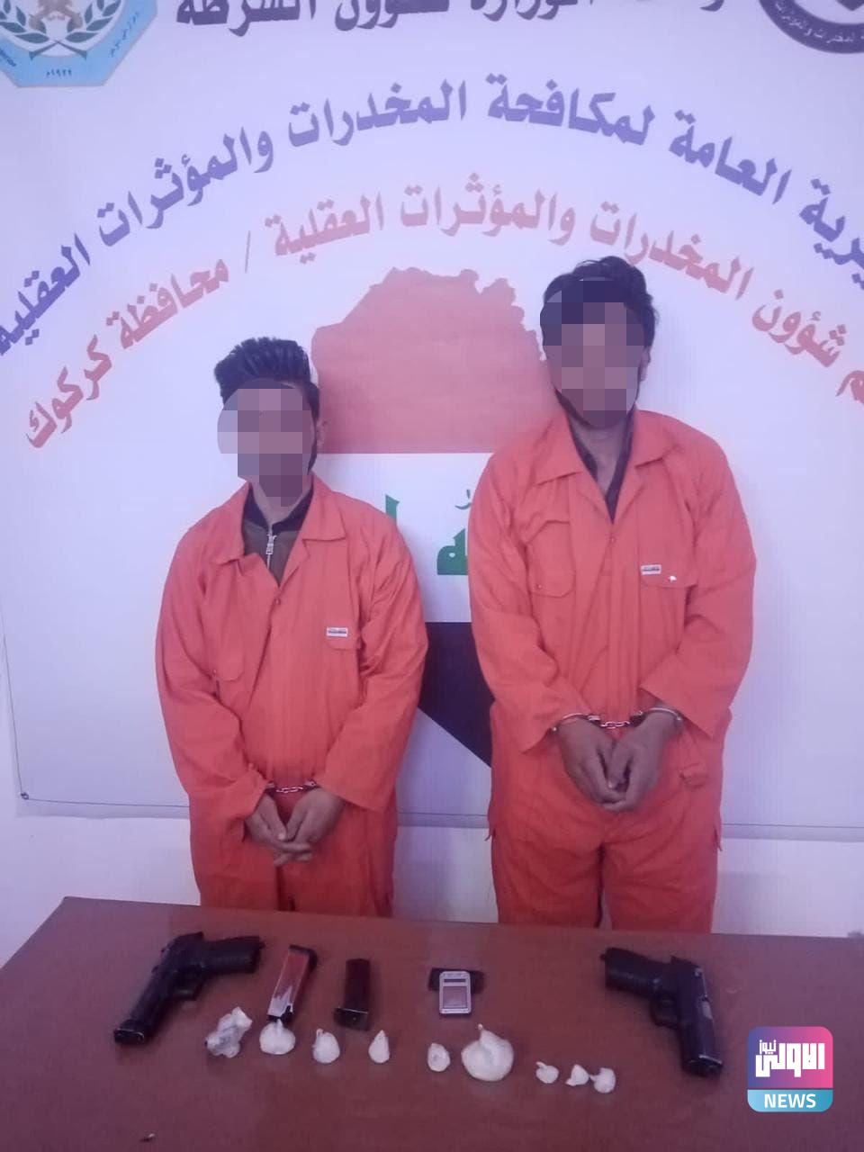 من خلال الحصول على معلومات استخبارية، القت مفارز المديرية العامة لمكافحة المخدرات والمؤثرات العقلية/ قسم مكافحة مخدرات كركوك، القبض على متهمين اثنين وضبطت بحوزتهما ما يقدر ب (43 غرام) من مادة الكرستال ، و (21 غرام) حشيشة , وأدوات للتعاطي، وسلاح ناري نوع مسدس عدد 2.