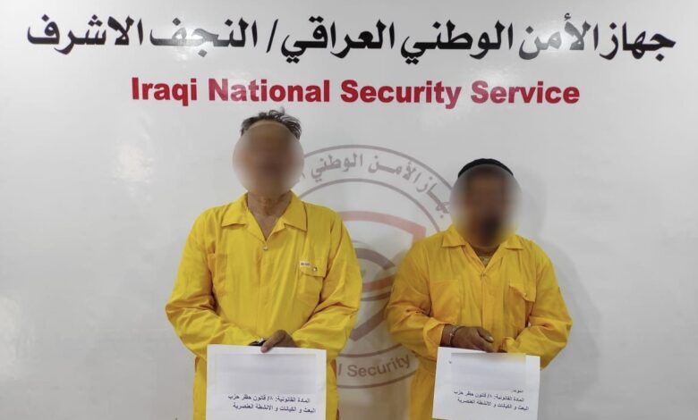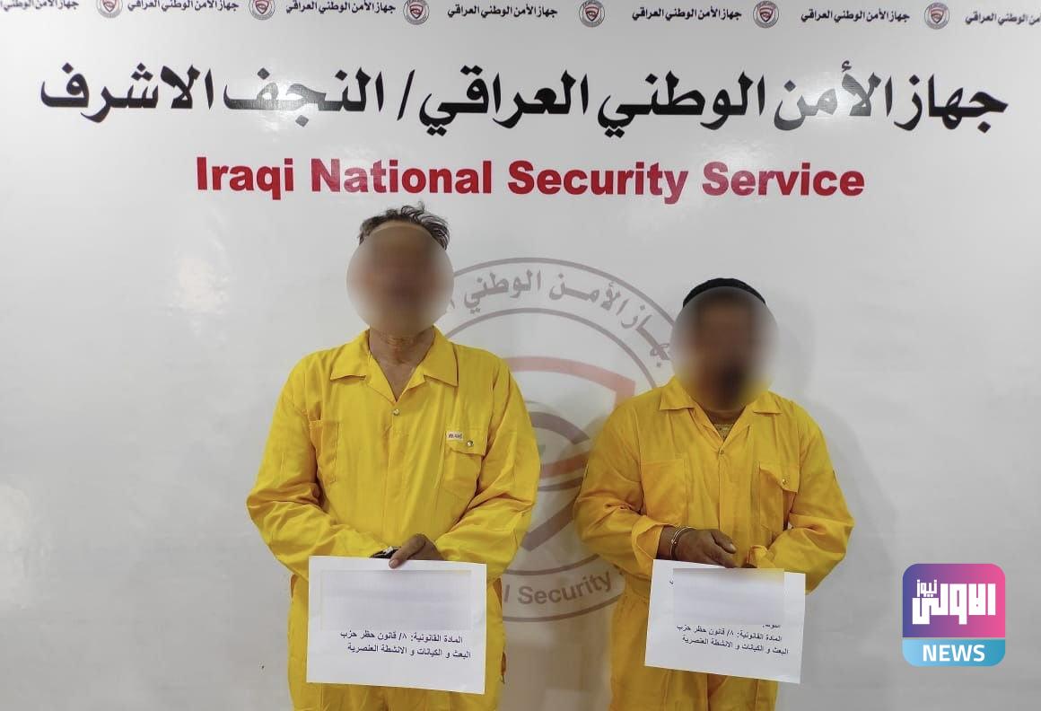 أعلنت مفارز الأمن الوطني، اليوم الثلاثاء، القبض على متهمين اثنين القيا قصائد واهازيج تمجد بحزب البعث المحظور في النجف الأشرف.