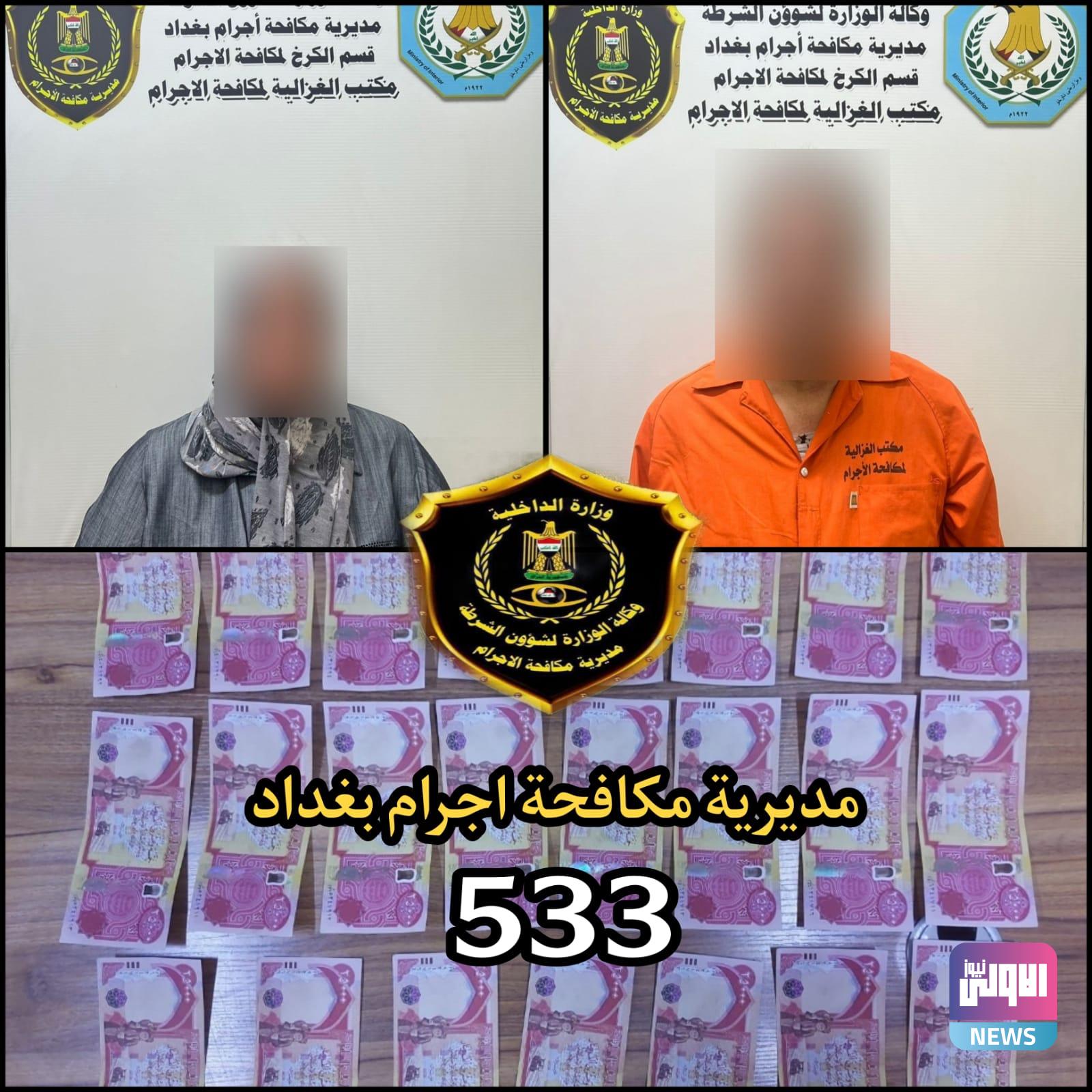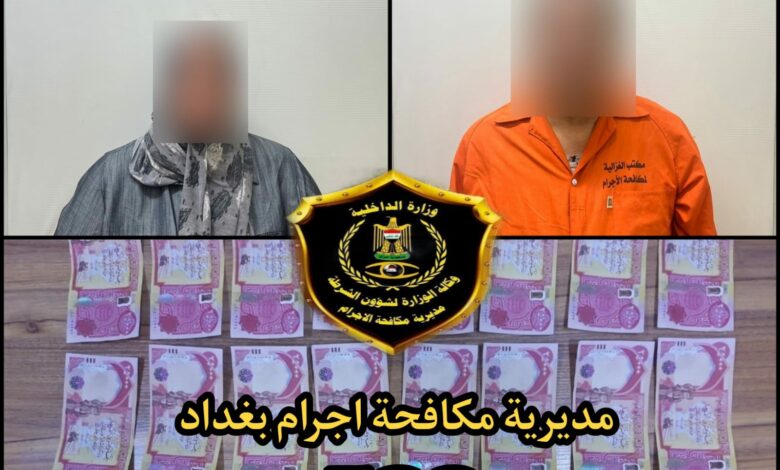 اعلنت وزارة الداخلية، الأحد، عن القبض على متهمين اثنين لقيامهما بترويج عملة مزيفة من فئة ٢٥ ألف دينار في بغداد.