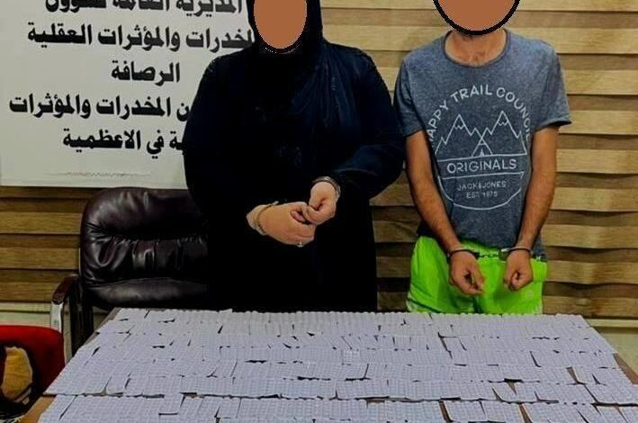 وذكرت المديرية في بيان، تلقت (الاولى نيوز) نسخة منه، انه “بعملية نوعية أمنية ومن خلال الحصول على معلومات استخبارية المديرية العامة لمكافحة المخدرات والمؤثرات العقلية في مديرية مكافحة مخدرات (الرصافة) تلقي القبض على (2) متهمين رجل وامرأة تحمل الجنسية الاجنبية وتضبط بحوزتهم على ( اكثر من كيلو غرام ) من مادة الكريستال المخدرة و ( 3000 ) حبة مخدرة من نوع ترامادول”.