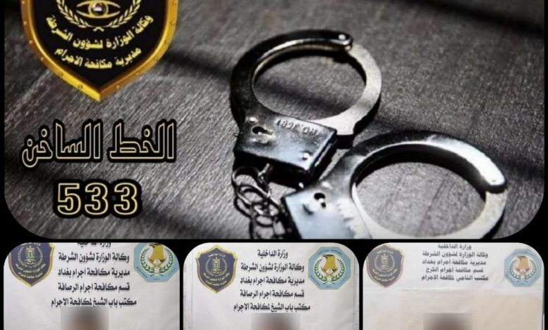 ومن جانب آخر نفذت مفارز مديرية مكافحة اجرام بغداد أوامر قبض بحق عدد من المتهمين بقضايا سرقة وتزوير ومطلوبين بقضايا جنائية مختلفة ضمن مكاتب مكافحة الإجرام في جانبي الكرخ والرصافة من العاصمة بغداد، حيث تم اتخاذ الإجراءات القانونية بحقهم وتقديمهم إلى القضاء لينالوا جزاءهم العادل.
