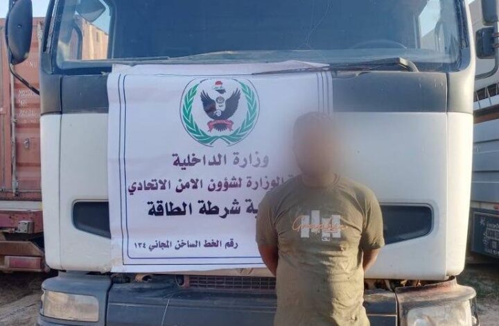 أعلنت مديرية شرطة الطاقة، اليوم الاثنين، القبض على متهم وضبط عجلته المعدة لتهريب المشتقات النفطية في واسط.