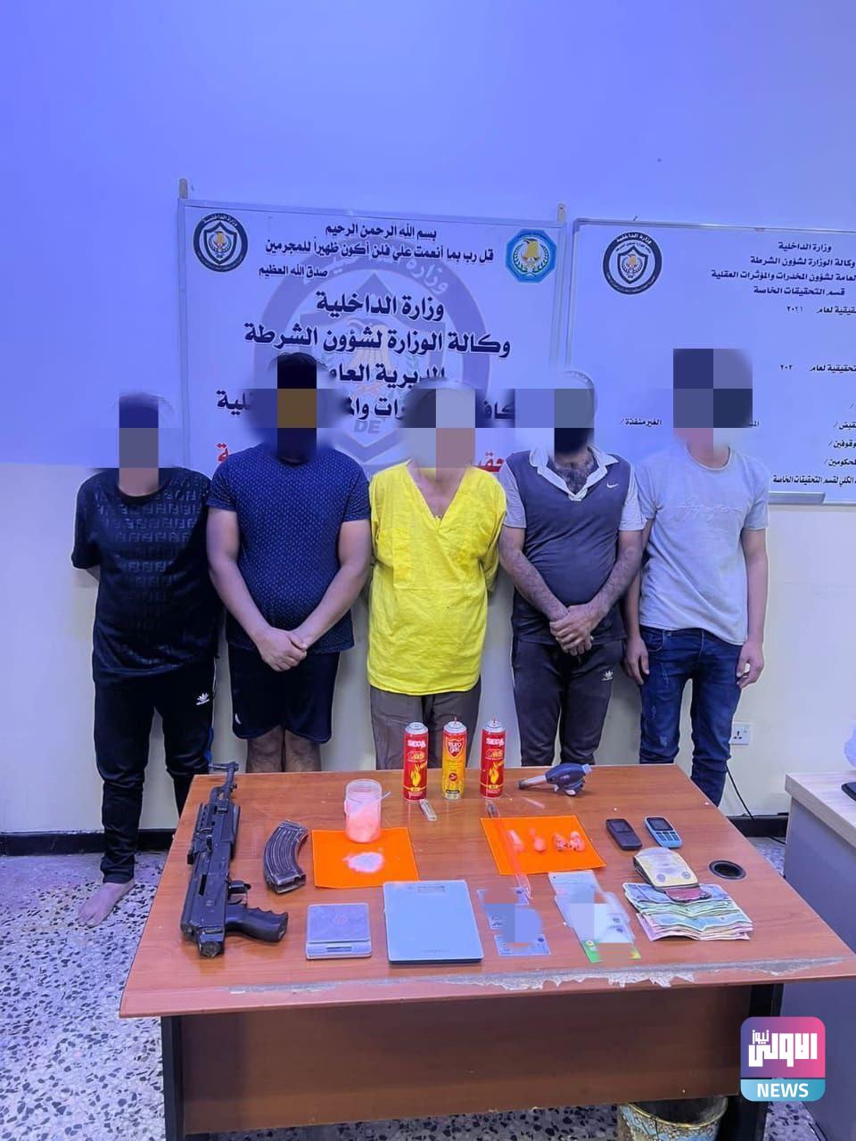 تمكنت مفارز المديرية العامة لمكافحة المخدرات والمؤثرات العقلية في بغداد من القاء القبض على (5) متهمين، ضبط بحوزتهم مادة الكريستال المخدرة، وأدوات للتعاطي مختلفة الأنواع، وسلاح ناري نوع كلاشنكوف.