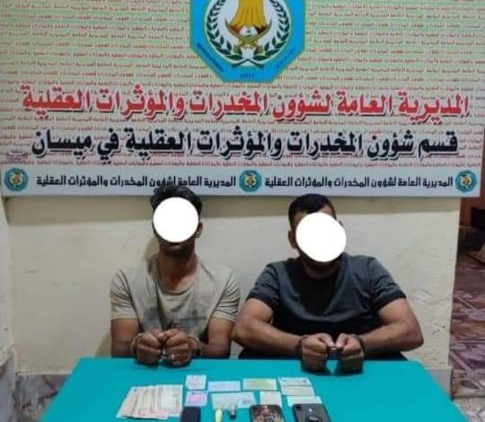 ألقت مفارز المديرية العامة لمكافحة المخدرات والمؤثرات العقلية القبض على ( 14 ) متهما في محافظات ( البصرة- وذي قار – وواسط – والمثنى – وميسان – والأنبار – وصلاح الدين ) وضبطت بحوزتهم انواعا من الحبوب المخدرة ومادة الكريستال المخدرة إضافة إلى أدوات التعاطي، وتمت إحالتهم إلى القضاء وفق أحكام المادتين القانونيتين (28 و 32 ) مخدرات.