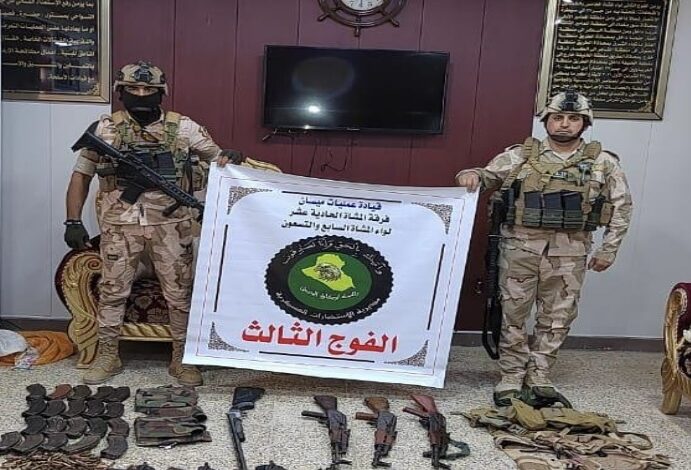من جانبها، اعلنت قيادة عمليات ميسان، عن ضبط كميات كبيرة من الاسلحة والاعتدة غير مرخصة في قضاء قلعة صالح.