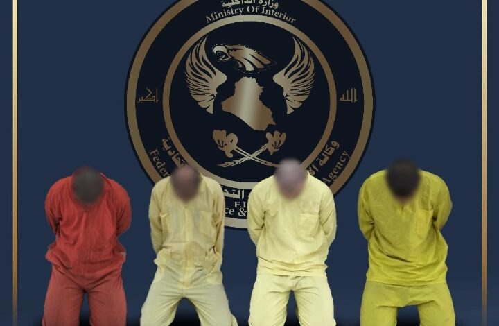 وذكر بيان للاستخبارات تلقته (الاولى نيوز)، أنه “تنفيذا لتوجيهات وزير الداخلية عبد الامير الشمري بمتابعة وملاحقة اخر ماتبقى من فلول داعش والقبض عليهم، تمكنت مفارز وكالة الاستخبارات المختصة بمكافحة الارهاب في نينوى وبناء على معلومات استخبارية دقيقة من القاء القبض على 4 مطلوبين كانوا ينتمون الى عصابات داعش الارهابي”.