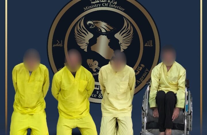 وذكر بيان لخلية الاعلام الامني، تلقته (الاولى نيوز)، ان “وكالة الاستخبارات والتحقيقات الاتحادية في وزارة الداخلية تمكنت من خلال المعلومات الاستخبارية الدقيقة وتعاون المواطنين من إلقاء القبض على أربعة متهمين مطلوبين وفق أحكام المادة أربعة إرهاب في محافظة نينوى”.