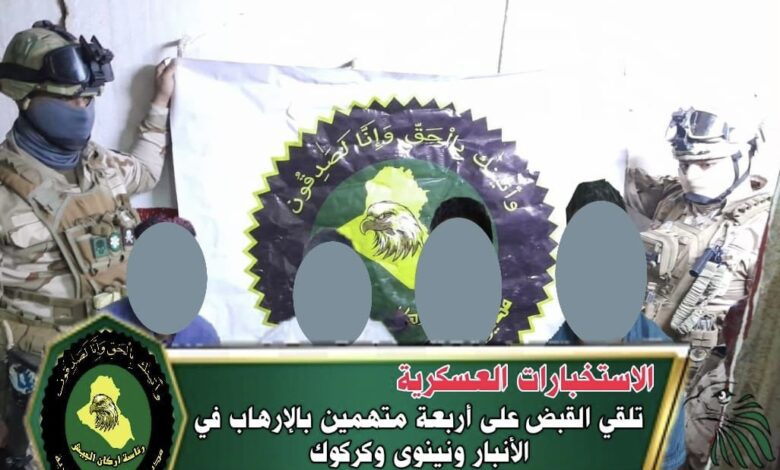 أعلنت مديرية الاستخبارات العسكرية، اليوم الجمعة، القبض على أربعة متهمين بالإرهاب في الأنبار ونينوى وكركوك.