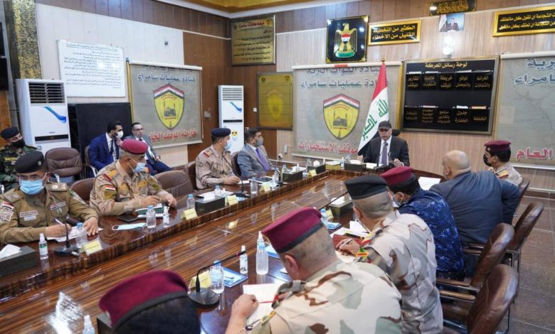 الكاظمي يلتقي بالقيادات العسكرية والأمنية في مقر قيادة عمليات سامراء