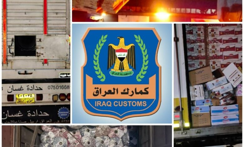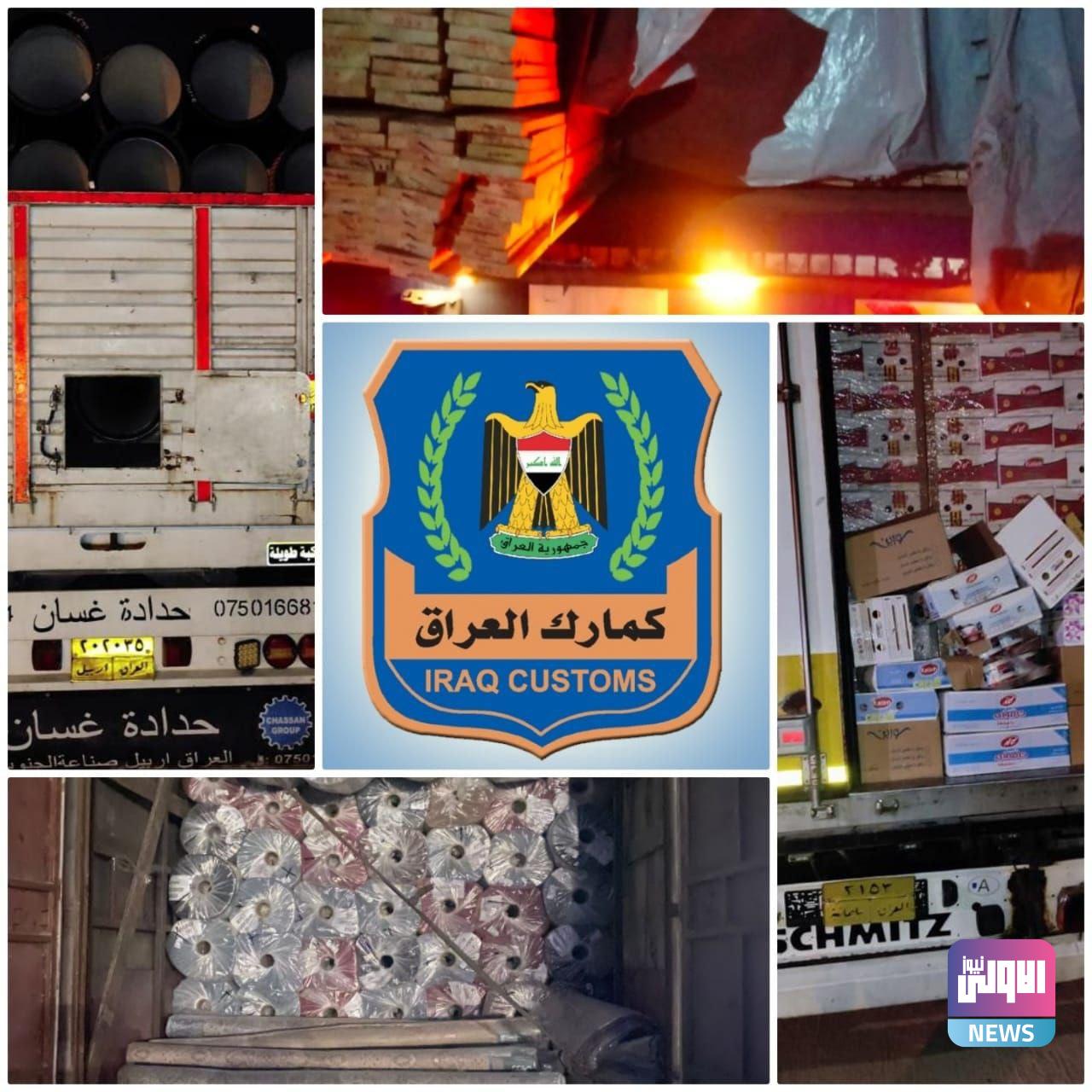 مديرية كمرك المنطقة الشمالية متمثلة بقسم التحري و مكافحة التهريب تضبط ( ٦ ) شاحنات محملة ( سجاد ، انابيب حديد ، مواد غذائية ، زيت هايدروليك ، خشب) مخالفة للشروط و الضوابط النافذة .