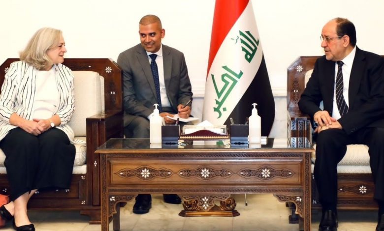 وقال المكتب الاعلامي لرئيس ائتلاف دولة القانون في بيان تلقته (الاولى نيوز)، ان “رئيس ائتلاف دولة القانون نوري المالكي استقبل بمكتبه اليوم سفيرة الولايات المتحدة الامريكية لدى العراق الينا رومانسيكي”، مبيناً انه “جرى خلال اللقاء بحث التطورات السياسية والامنية في البلاد والمنطقة، فضلاً عن التعاون بين البلدين وبما يعزز أواصر العمل والتنسيق على الصعد السياسية والاقتصادية والثقافية خدمة للمصالح المشتركة للشعبين الصديقين”.