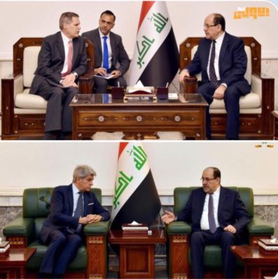 استقبل رئيس ائتلاف دولة القانون السيد نوري المالكي بمكتبه اليوم في لقائين منفصلين سفيري الولايات المتحدة وفرنسا لدى العراق .