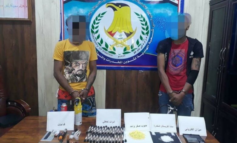 تمكنت المديرية العامة لمكافحة المخدرات والمؤثرات العقلية التابعة الى وكالة الوزارة لشؤون الشرطة من إلقاء القبض على متهمين اثنين وضبط بحوزتهما (٦٠٠) حبة مخدرة من نوع (كبتاجون)، و(٢٩) غراما من مادة الكريستال المخدرة، و(٥٥) أنبولة تعاطي مستخدمة وغير مستخدمة، وميزان الكتروني وقداحات، وتم اتخاذ الإجراءات القانونية اللازمة بحقهما وفق أحكام المادة (٢٨) مخدرات وإحالتهما الى القضاء لينالا جزاءهما العادل.